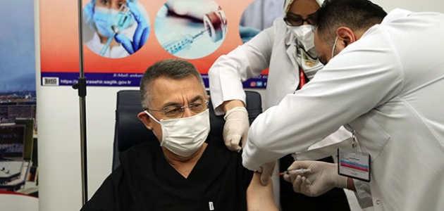 Cumhurbaşkanı Yardımcısı Fuat Oktay, Ankara Şehir Hastanesi'nde Kovid-19 aşısı yaptırdı.