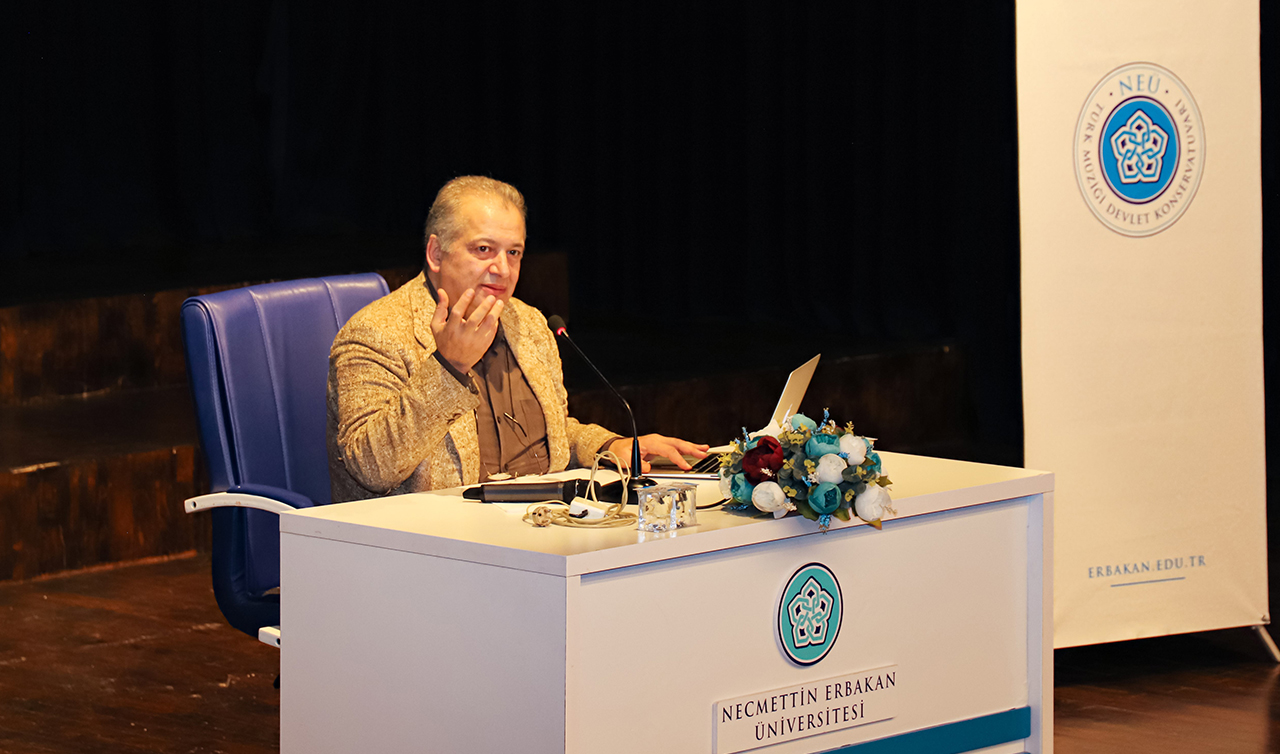Necmettin Erbakan Üniversitesi (NEÜ) Türk Müziği Devlet Konservatuvarı tarafından düzenlenen “Türkiye’de Türk Müziğinin Resmî İcrâsının 50’nci Yılı” başlıklı söyleşi, Cumhurbaşkanlığı Klasik Türk Müziği Korosu Şefi Mehmet Güntekin’in katılımıyla gerçekleştirildi.