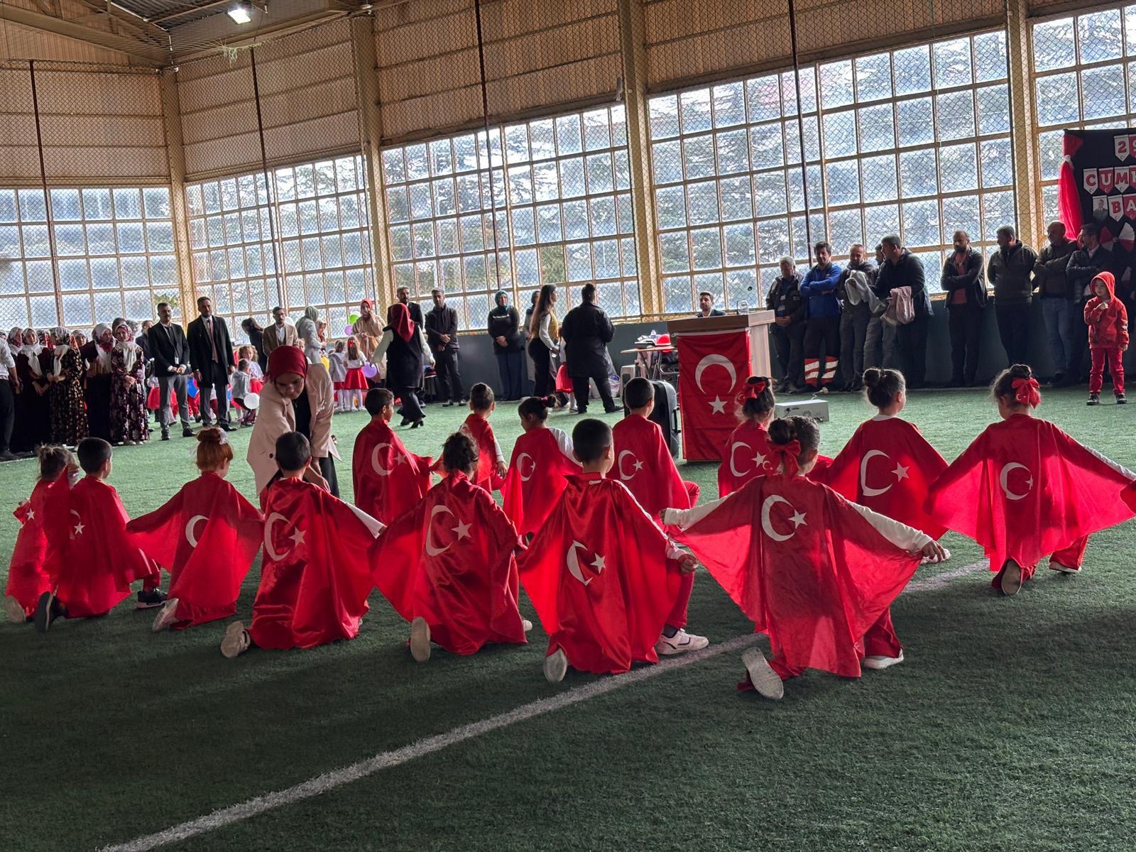 Öğrenciler tarafından okunan şiirler, gösteriler ve halk oyunları ile renklenen kutlama programı, büyük bir coşku ve alkışlar eşliğinde sona erdi.