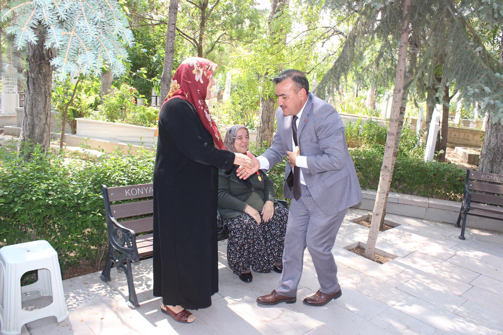 Çumra Belediye Başkanı Halit Oflaz, Çumra Kaymakamı Huseyin Ece ve protokol üyeleri, şehit Yakınları ve gaziler ile birlikte Çumra şehitliğini ziyaret etti.