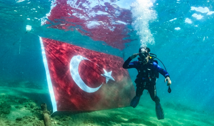 Mersin'in Erdemli ilçesinde bir grup dalgıç, 29 Ekim Cumhuriyet Bayramı dolayısıyla su altında Türk bayrağı açtı.