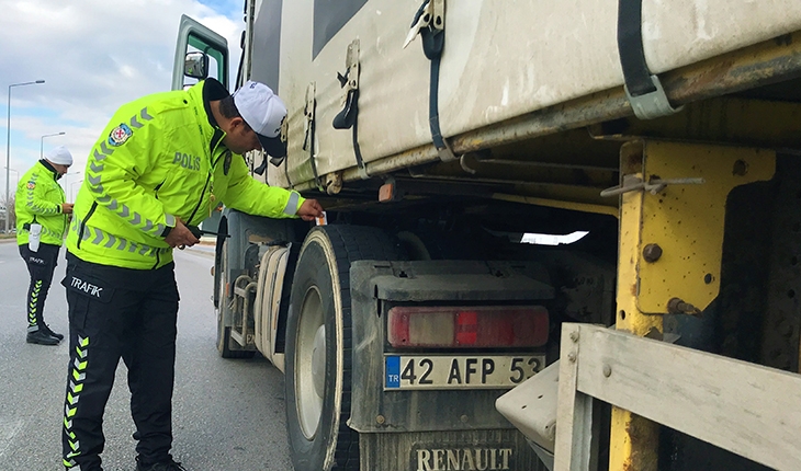 "Hususi araçlarla ilgili olarak bütün sürücülerin kış lastiği takmasını öneriyoruz"Uygulama ile ilgili bilgi veren Konya Trafik Denetleme Şube Müdürlüğü Ekipler Amiri Komiser Ramazan Söylemez, "Kış lastiğini takmanın önemi özellikle sıcaklığın sıfır derecenin altına düşmesiyle araçların frenleme esnasında durma mesafesini azaltır, kış lastiği takılmayan aracın fren mesafesi ise uzar. Bu nedenle her yıl, ülkemizde tescilli veya tescilli olmasın yük ve yolcu taşımacılığı yapılan tüm araçlarda 1 Aralık’tan takip eden yılın 1 Nisan tarihine kadar kış lastiği bu süre zarfında zorunludur. Kış lastiği il sınırları içerisinde valilikler tarafından belirlenir. Bu belirleme ise yerel sıcaklıklar baz alınarak yapılır. Şu an Konya’da valiliğimiz tarafında alınan kararla 1 Aralık itibariyle uygulamaya başladık. Valilikçe alınan karar doğrultusunda ticari, yük nakli ve yolcu taşımacılığındaki çalışmalarımızı aralıksız sürdürüyoruz. Ancak kış lastiğini sadece yük, ticari ve yolcu taşımacılığı yapan araçların değil, ilimiz sınırları içerisinde hususi araçlarla ilgili olarak bütün sürücülerin kış lastiği takmasını öneriyoruz" diye konuştu.