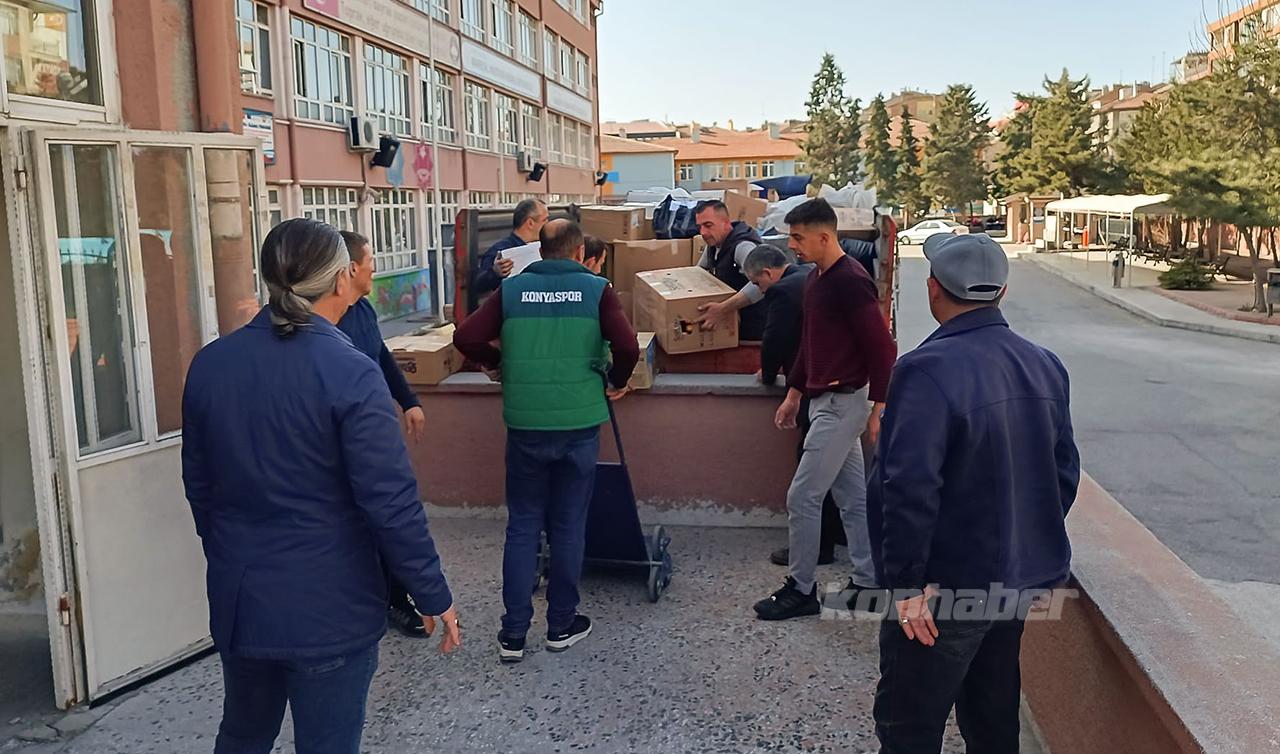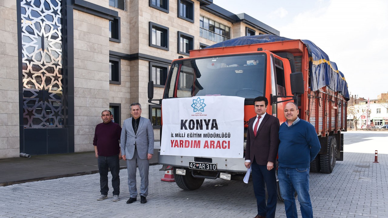 Konya İl Milli Eğitim Müdürlüğü koordinesinde okul ve kurumların destekleri ile düzenlenen kampanya kapsamında temin edilen malzemelerden oluşan birinci sevkiyat 02 Mart 2023 tarihinde Adıyaman il merkezine, ikincisi de 03 Mart 2023 tarihinde Gaziantep'in Nurdağı ilçesine gönderilerek yetkililere teslim edilmişti.