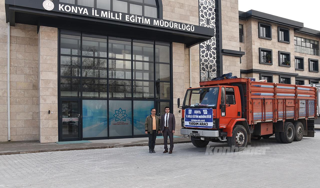 Konya İl Milli Eğitim Müdürlüğü öncülüğünde okullar tarafından yürütülen "Deprem Bölgesindeki Çocuklarımızın İhtiyaç Malzemeleri" kampanyası kapsamında temin edilen malzemelerden oluşan üçüncü sevkiyat aracı depremzede vatandaşlarımıza ulaştırılmak üzere yola çıktı.