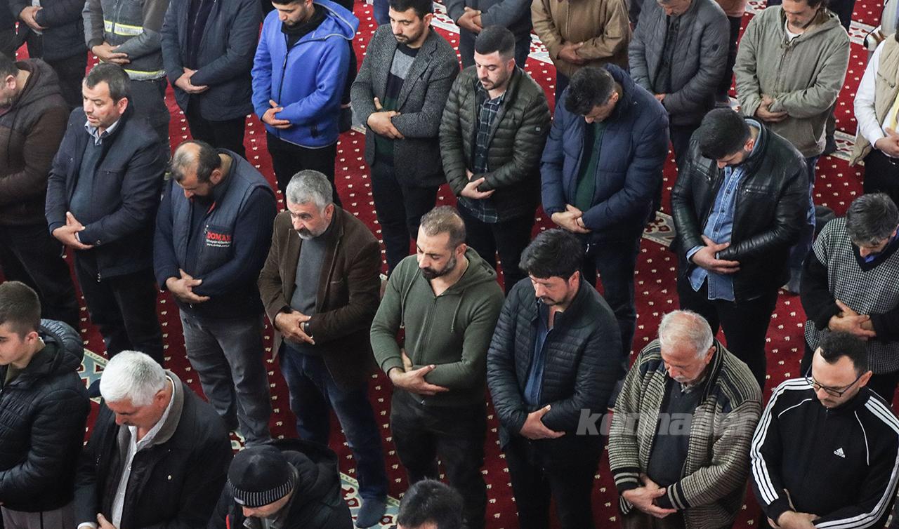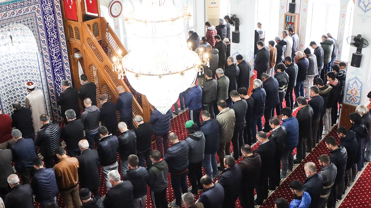 Hutbenin ardından vatandaşlar cuma namazını kıldı, depremde hayatını kaybedenler için dua etti.