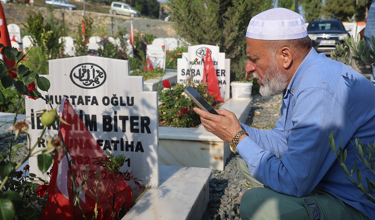 Depremde annesini kaybeden Bedri Türk, "Burası 6 Şubat depreminde şehit olan yakınlarımızın mezarı. Depremde annemi kaybettim. Bütün ölmüşlerin mekanı cennet olsun inşallah. Her bayramda olduğu gibi bu bayramda da gelip mezarın başında Fatiha ve dualar okuduk. Buraya her geldiğimizde duygulanıyoruz. Buraya gelince acılarımızı ilk günkü gibi hissediyoruz. Rahmetli annem 72 yaşında yatalaktı. Depremin 6'ncı gününde çıkarttık. Mezarlığına gelip ziyarette bulunduk. Kayıplarımız için çok üzgünüz" dedi.