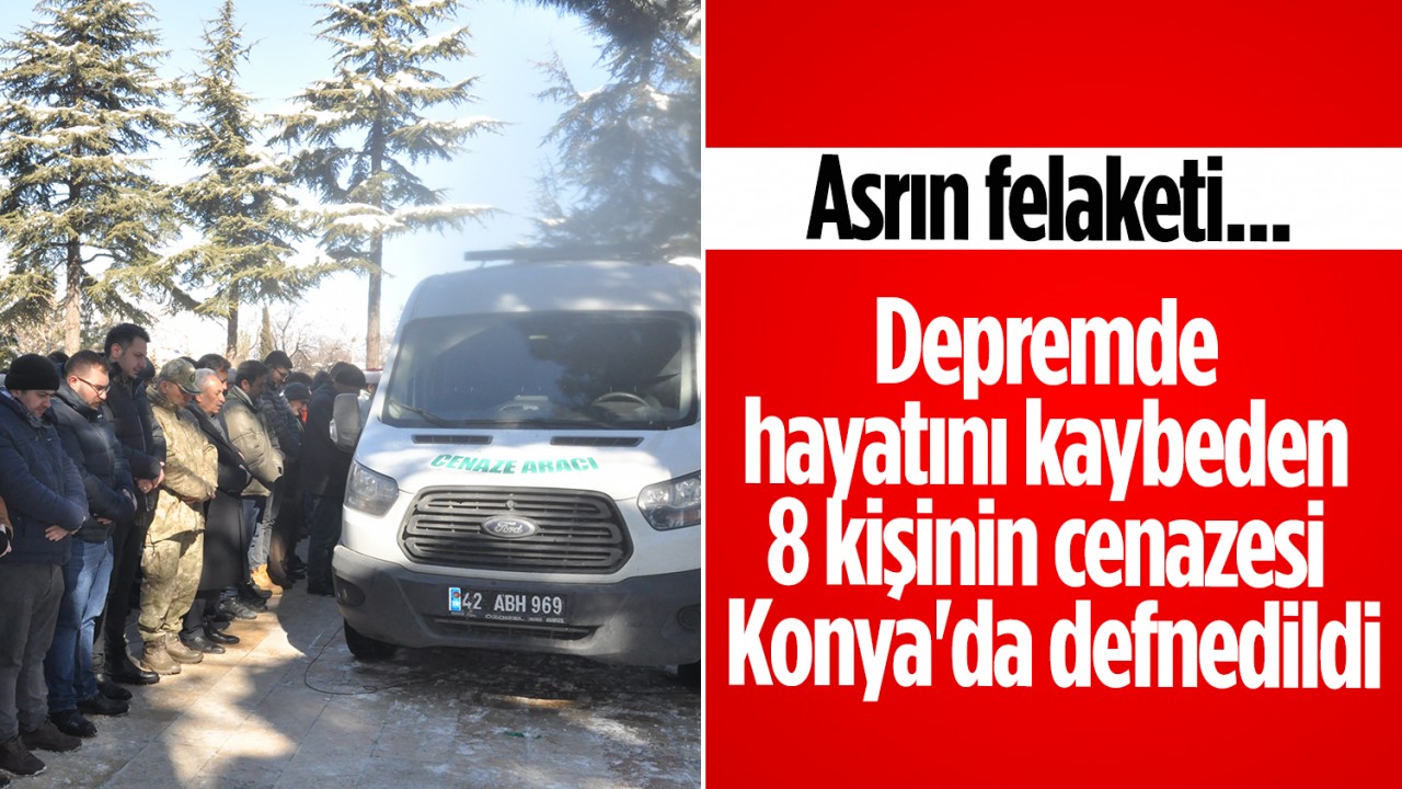 "Asrın felaketi" olarak nitelenen Kahramanmaraş merkezli depremlerde yaşamını yitiren 8 kişinin cenazesi, Konya'da toprağa verildi.