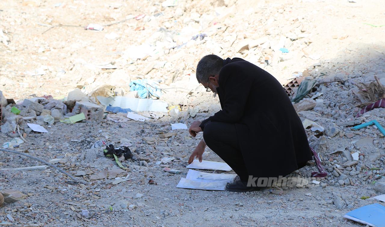 Yitirdikleri yakınlarına dair iz ve hatıra aramaya gelen diğer afetzedelerin molozların arasında toza bulanmış halde bulduğu sevgililer günü kartpostalı, oyuncak gibi kişisel eşyalar yürekleri burkuyor.
