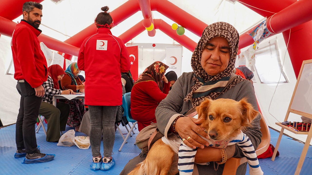 Eşi ve kızıyla Kahramanmaraş'ta yaşayan Hatice Avcı, Pazarcık merkezli 7,7 büyüklüğündeki depremden 18 dakika önce tırmalayarak ve uluyarak uyanmasını sağlayan "Mihriban" adlı köpeğini yanından ayırmıyor.Evinin depremlerde ağır hasar görmesinin ardından ailesiyle Onikişubat ilçesindeki Vali Saim Çotur Spor Kompleksi'nde kurulan çadır kente yerleştirilen Avcı, köpeğine adeta gözü gibi bakıyor.