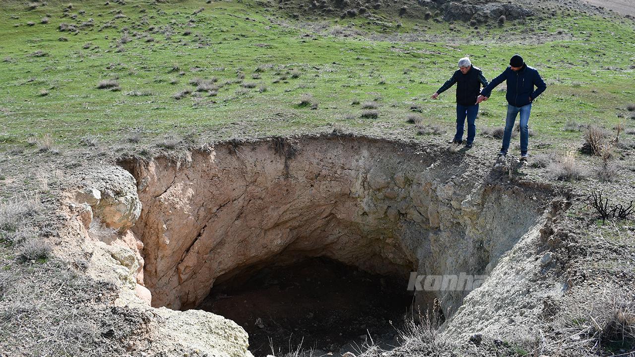 "Bu karbonatlı kayaçlar bölgede düzlük alanlarda da yer alıyor ve suyla etkileştiğinde erimelere sebep oluyor. Üzerindeki toprağın ağırlığıyla birtakım çöküntülere bölgede rastlayabiliyoruz.Bu çöküntülerin, Konya Ovası'nda geniş alanlarda oluşan obrukların küçük birer örneği. Kireç taşları bölgede sadece düzlüklerde değil, Tecer Dağları'nın oluşumunda da etken. Çok büyük yükseltiler de oluşturabiliyor. Kahramanmaraş merkezli depremler bu obrukların oluşum zamanını daha öne çekmiş olabilir. Özellikle ikinci depreme 150 kilometrelik bir mesafede olmasına rağmen yer kabuğunda meydana gelen hareketlerin bu çökmeleri daha da öne aldığını söyleyebilirim. Bu karstik çöküntülerin üzerinde alttaki suyun erimesiyle bazı küçük obruk benzeri yapılar olabiliyor."