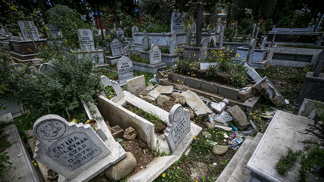 Çekmece Mahallesi'ndeki yaklaşık 2 bin kabrin bulunduğu mezarlık, 6 Şubat'taki Pazarcık ve Elbistan merkezli depremler ile 20 Şubat'taki Defne merkezli 6,4'lük sarsıntıya dayanamadı.