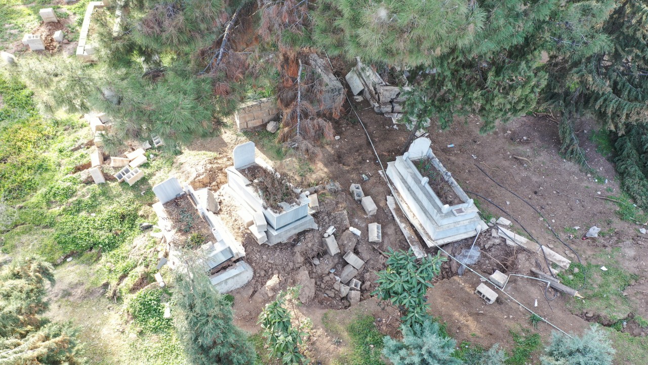 Kahramanmaraş merkezli 6 Şubat'taki depremlerin etkilediği Gaziantep'in Nurdağı ilçesinde Olucak Mahallesi'ndeki mezarlıkta da hasar meydana geldi.