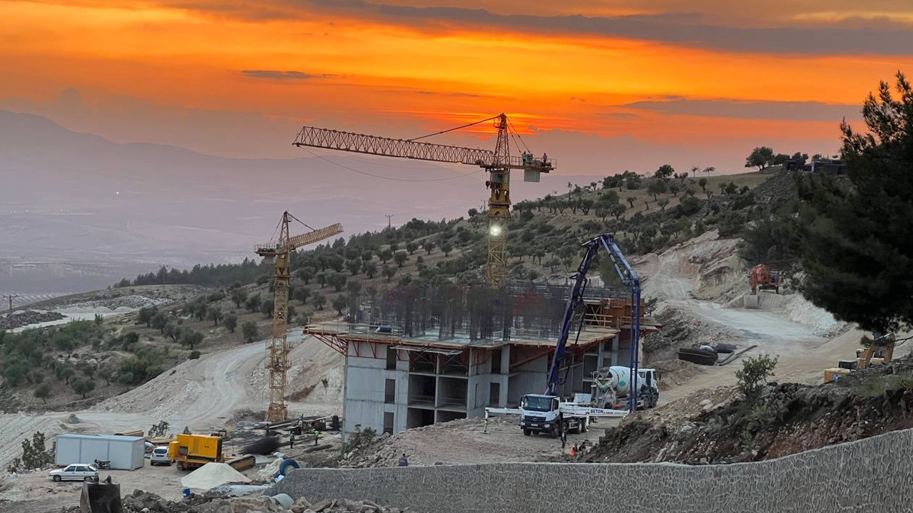 Alpay, 2 blokun yükseldiğini, 6 blokun da temelinin atıldığını belirtti.Çalışmaların 12 paletli kepçe ve 12 kamyonla süratle devam ettiğine dikkati çeken Alpay, "Şu an yaklaşık 100 personelimiz var. Çalışmalarımız gece gündüz devam ediyor. Haftanın 7 günü çalışıyoruz." dedi.