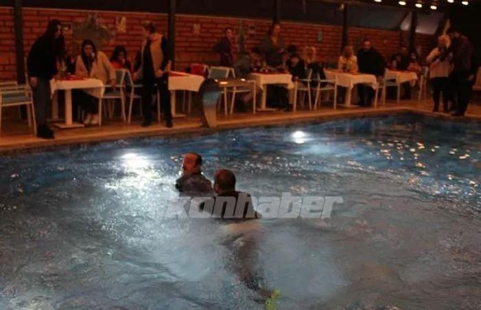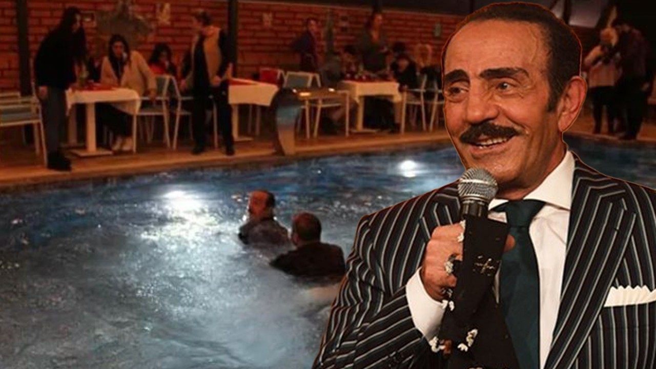 Aydın’ın Kuşadası ilçesinde depremzedelere moral gecesinde sahneye doğru yürürken ayağı zemine takılan türkücü Mustafa Keser, dengesini kaybedip havuza düştü.