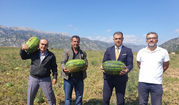 Derebucak Belediye Başkanı Ahmet Kısa, ilçede bulunan karpuz ekili alanlarda incelemelerde bulundu.
