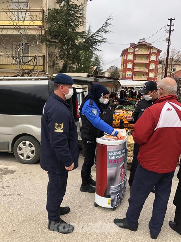İlçe Emniyet Amirliği ile İlçe Jandarma Komutanlığı personeli, kaymakamlık öncülüğünde yürütülen faaliyette, ilçe merkezindeki pazar yerinde kurduğu stantta, KADES uygulamasının önemi hakkında bilgiler verdi.