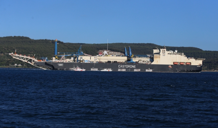 Karadeniz'deki 540 milyar metreküplük doğal gazı taşıyacak boruları derin deniz tabanına yerleştirecek "Castorone" adlı gemi Çanakkale Boğaz'ından geçti.