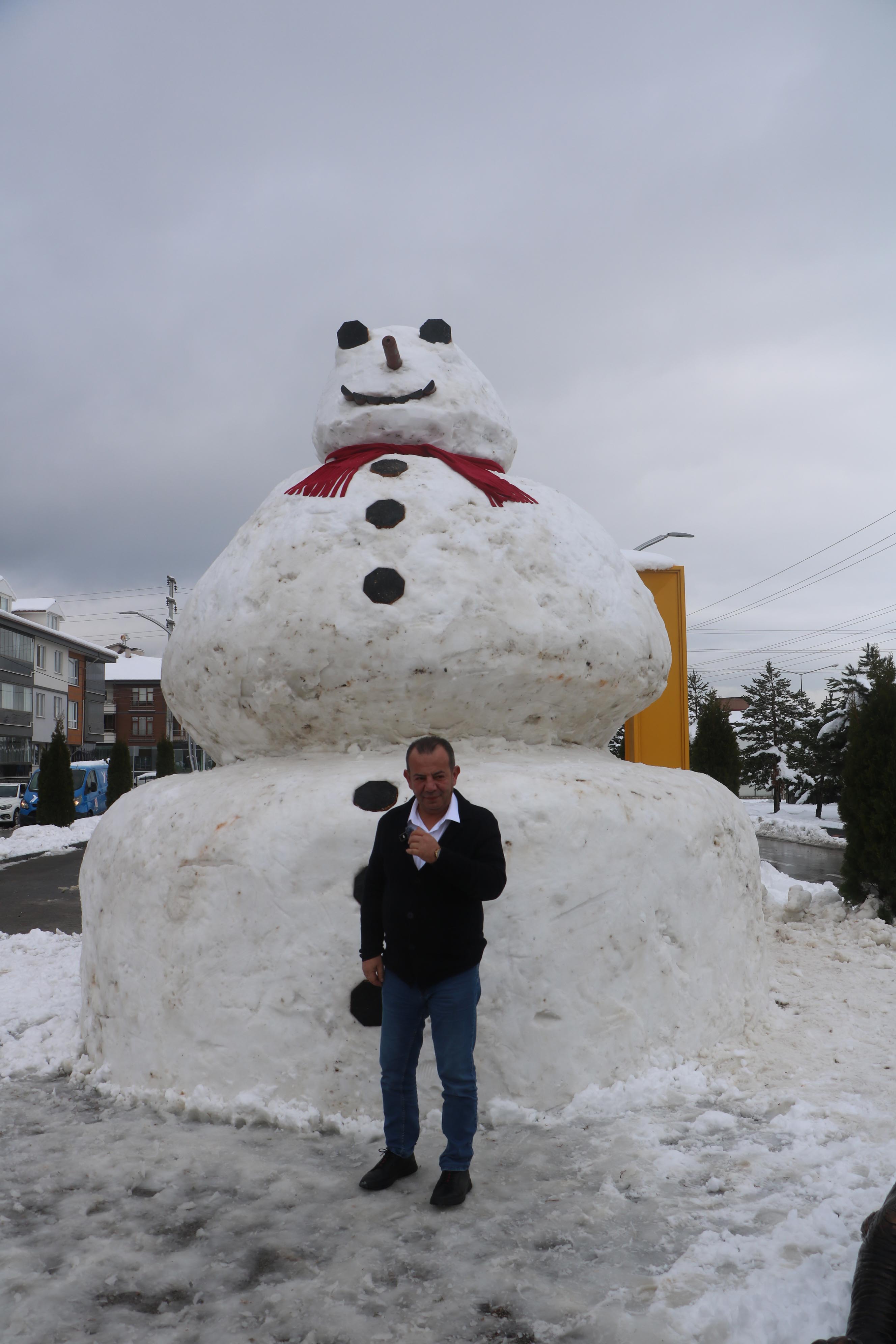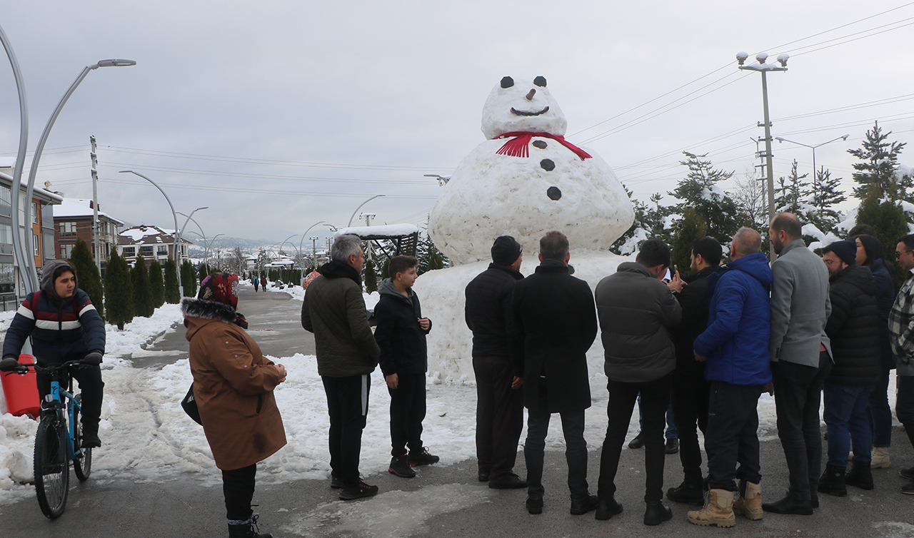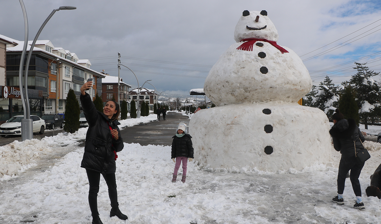 Toplanan tonlarca kar yürüyüş parkurları ve parkların bulunduğu Kuvayi Milliye Bulvarı’na getirildi. Belediye ekipleri tarafından iş makineleriyle bulvar üzerindeki alana 5 metre yüksekliğinde dev kardan adam yapıldı. Kardan adam başta çocuklar olmak üzere vatandaşların ilgisini çekti. Mahalleli ve yoldan geçenler çocuklarıyla birlikte kardan adamın önünde bol bol fotoğraf çektirdi.