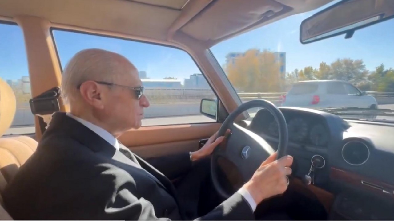 Klasik otomobil tutkusuyla bilinen MHP Genel Başkanı Devlet Bahçeli, eski model otomobiliyle Ankara sokaklarında tur attı.