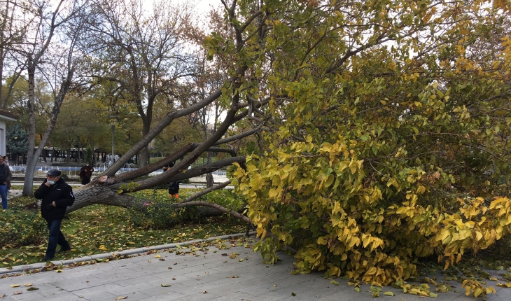 2 gündür etkili olan sağanak yağış ve rüzgar dolayısıyla parkta bulunan bir ağaç devrildi.