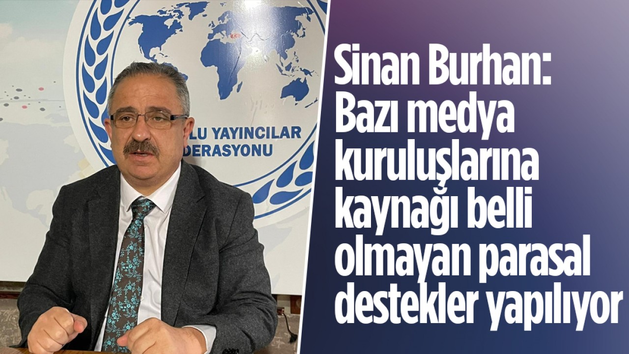Anadolu Yayıncılar Derneği Başkanı Sinan Burhan, son zamanlarda Basın İlan Kurumunun destekleri dışında bazı gazete ve internet haber sitelerine kaynağı belli olmayan parasal desteklerin yapıldığını söyledi.