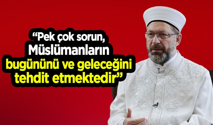 İslam toplumlarının bugün içinde bulunduğu olumsuz tablonun, asla ümitsizliğe sürüklememesi gerektiğini vurgulayan Erbaş, “Unutmamalıyız ki bizler bütün sorunlarımızı çözebilecek inanca, irfana ve bilgi birikimine sahibiz. Hem kendimizin hem de bütün insanlığın sorunlarını çözme noktasında Kur’an ve sünnet, en büyük imkanımızdır. Geçmişte olduğu gibi bugün de öncelikli sorumluluğumuz, Kur’an’ı ve sünneti doğru anlamak, mesaj ve ilkelerini çağımıza taşımaktır. İnancımızın bu iki temel kaynağı, aynı zamanda bizlere, yüreklerimizi birbirimize açmamızı, ortak zeminimizi sağlamlaştırmamızı ve kardeşlik ekseninde bir dayanışma şuuru geliştirmemizi telkin etmektedir.