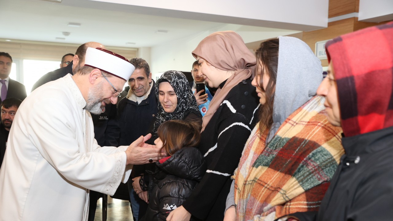Erbaş, Diyanet İşleri Başkanlığı Rıfat Börekçi Eğitim Merkezi'nde kalan depremzede aileleri ziyaret etti.