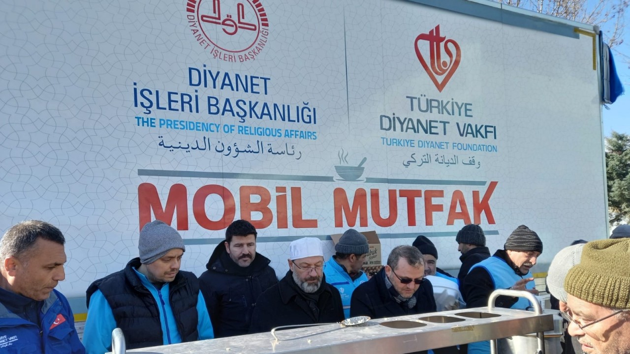 Devlet ve millet olarak yaraların hep birlikte sarılacağını kaydeden Erbaş, "Türkiye Diyanet Vakfı mobil mutfağımızda hazırladığımız sıcak yemekleri deprem mağduru kardeşlerimize ikram ettik. Din görevlilerimiz ve Türkiye Diyanet Vakfı görevlilerimizle birlikte maddi ve manevi olarak kardeşlerimizin yanındayız." ifadesini kullandı.