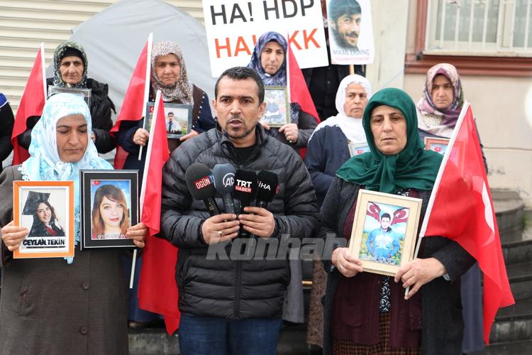 "Cumhuriyet Halk Partisi, teröre destek veren terörün partisinin gitti elini sıktı, el sıkıştılar. Birlikte terör ittifakı kurdular. Buradan acılı anne ve babalar olarak Kemal Kılıçdaroğlu'na sesleniyoruz. 'Senin evladın varsa bir saat eve gelmezse ne yaparsın?' Bundan eminim ki kıyameti koparırsın. Evlatlarımız 7-8 yıldır bağrımızdan zorla koparılarak HDP'liler tarafından terör örgütü PKK'nın önüne atıldı. Kemal Kılıçdaroğlu, madem HDP'ye bu kadar destek veriyorsunuz, madem HDP ile birlikte seçime gireceksiniz. O zaman biz anne ve babalar olarak evladımızı sizden de istiyoruz. Bizim evlatlarımızı getirin. HDP kendi adayını çıkarmıyor, Kandil kendi adayı olarak Kemal Kılıçdaroğlu'nu kabul etmiştir. Biz Kemal Kılıçdaroğlu'na sesleniyoruz; 'Kandil seni kırmaz, bir açıklama yap da evlatlarımızı iste, evlatlarımızı serbest bıraksınlar."