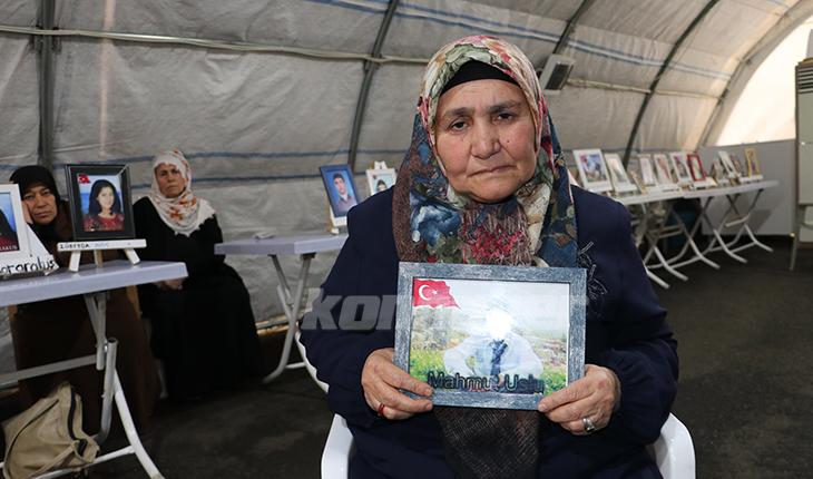 Evladını çok özlediği ifade eden Uslu, "Mahmut'umu almadan bu çadırı terk etmeyeceğim. Bizi perişan ettiler, ağlamaktan gözlerimizde yaş kalmadı. Ne hakları vardı bize bunu yapmaya. PKK hem Kürtlerin hem de Türklerin ciğerini yaktı." dedi.