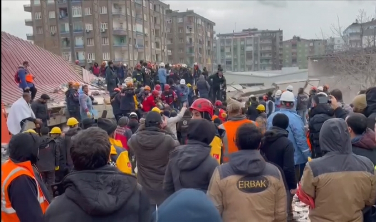 Merkez üssü Kahramanmaraş'ın Pazarcık ilçesi olan ve 10 ili etkileyen 7,7 büyüklüğündeki depremde Diyarbakır'da yıkılan binanın enkazından arama kurtarma çalışmaları sonucu 2 kadın kurtarıldı.