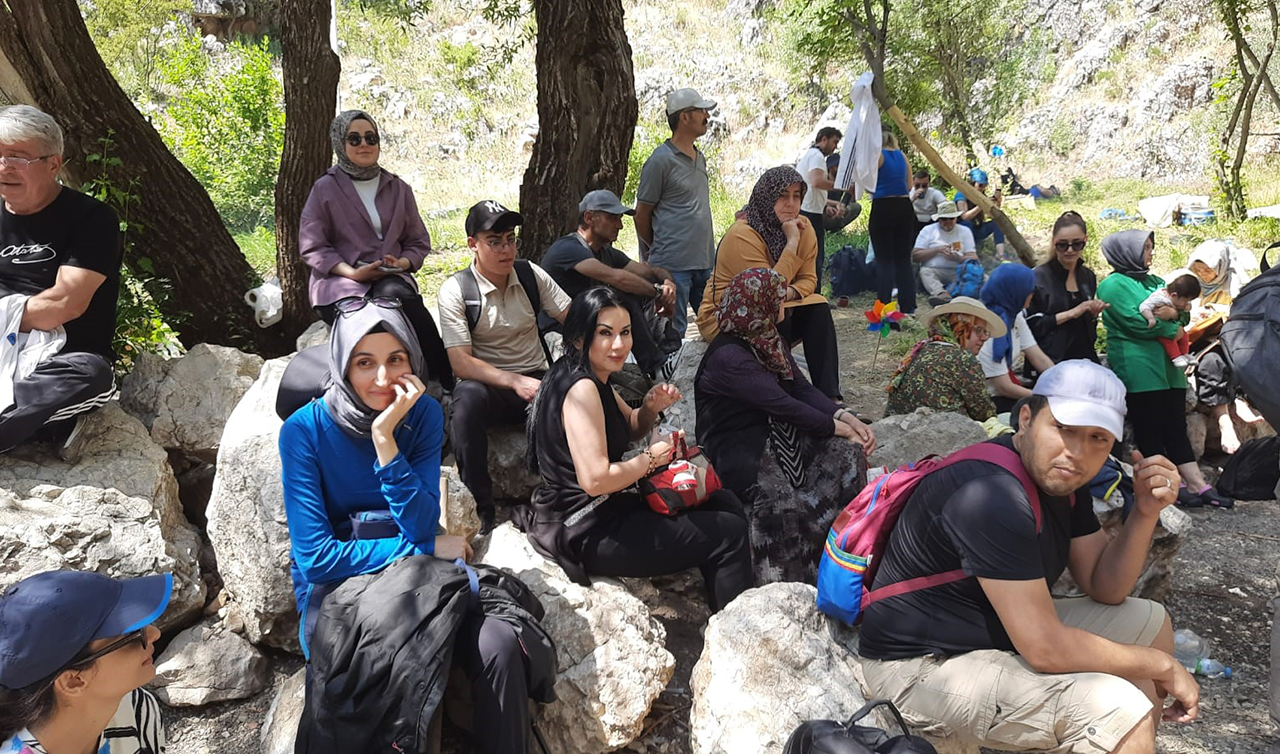 Derebucak'taki Çamlık mağaralarını da gezen doğa severler, burada da mağara içerisinden geçiş yaptı, ardından başladığı yürüyüşü tamamladı.