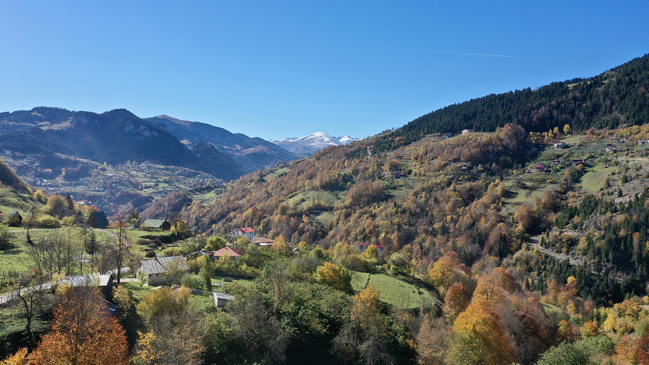 Travertenleri, yaylaları ve sodalı sularıyla öne çıkan Giresun'un Dereli ilçesinde sonbahar renkleri güzel manzaralar oluşturdu.