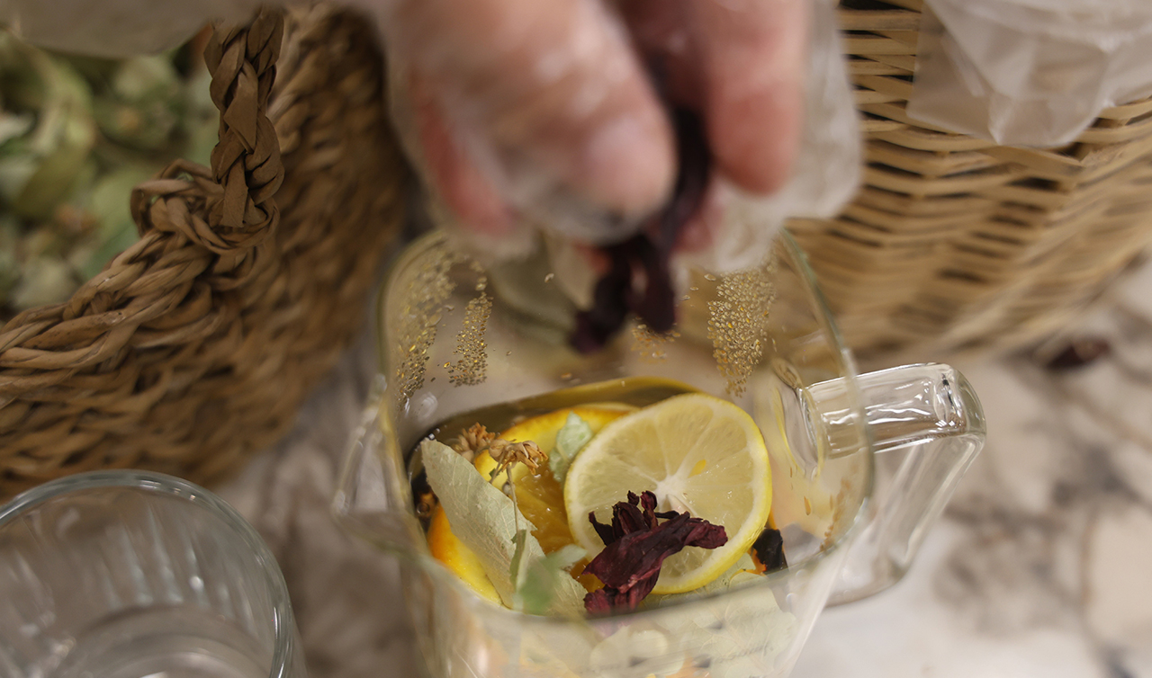 Karışımı evde hazırlamak isteyen vatandaşlara karışımı anlatan Elife Kulekaya, "Kaynar suyun içine yaş zencefil ve tarçını atıp iki dakika kaynattım, sonra altını kapattım. İçine kış ayının vazgeçilmezi harika bir antiseptik, antidepresan özelliği olan ıhlamur, isterseniz çiçek ıhlamur da atabilirsiniz, kuşburnu çok iyi bir soğuk algınlığına birebir iyi gelir ve isterseniz ada çayı da atabilirsiniz içine. Sonra da C vitamini tabii ki olmazsa olmazımız limon. Dilerseniz aroma vermesi ve C vitamini açısından katkı arttırması açısından da portakal atabilirsiniz. Sonra bunu demlemeye bırakıyoruz. 5 dakika sonra servise hazır" diye anlattı.