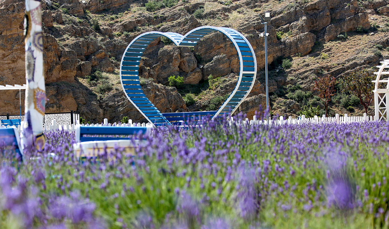 20 bin metrekarelik alan üzerine kurulu bu mor cennet; ahşap yürüyüş yolları, mermer havuzları, seyir ve salıncak teraslarıyla huzura açılan bir kapı gibi Meram Lavanta Bahçesi… Lavanta kokuları arasında ve muhteşem manzarası eşliğinde yürüyüş yaparken adeta zaman yavaşlıyor, hayat daha da anlam kazanıyor…