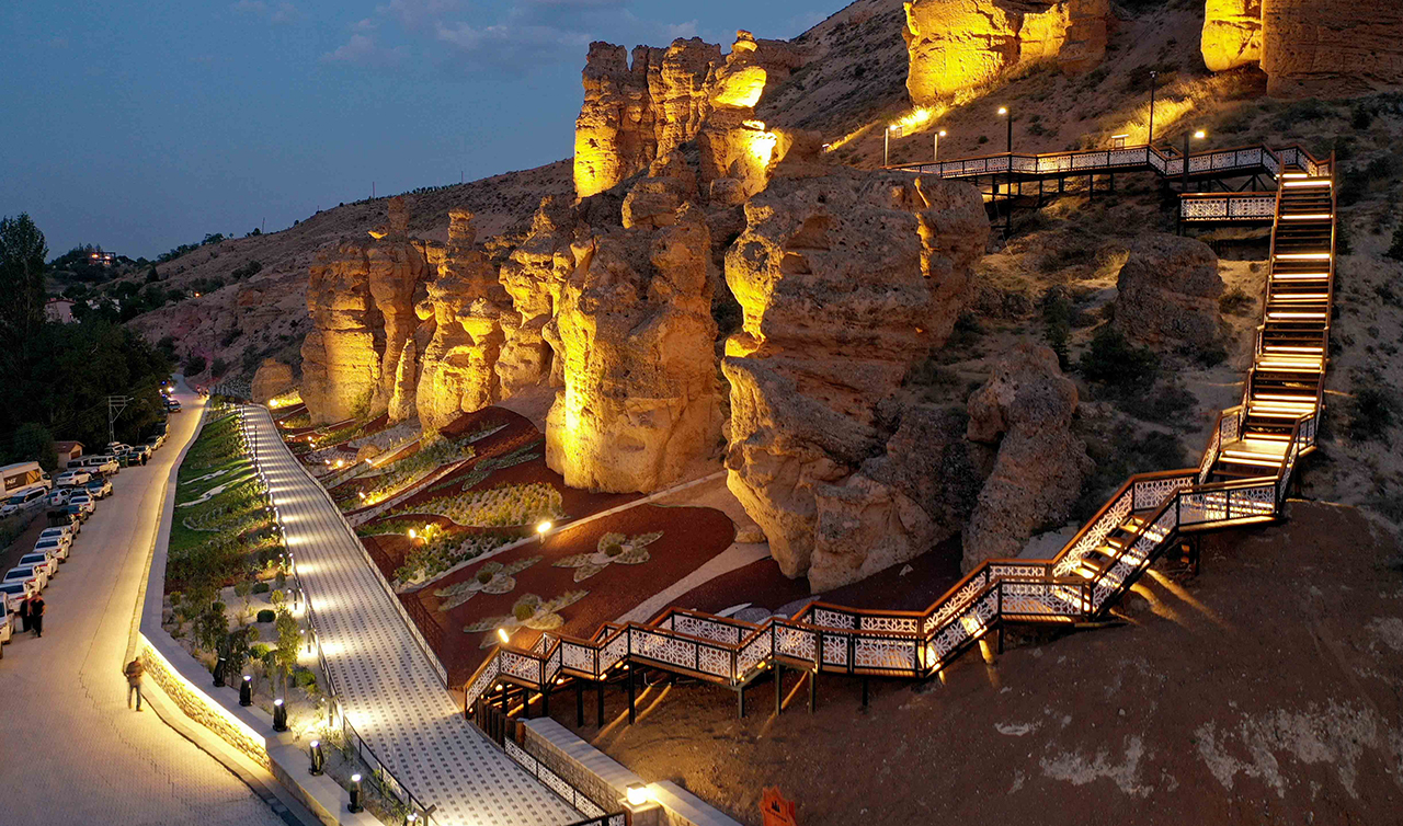 Kapadokya’yı andıran kaya oluşumları ve efsaneleriyle bütünleşmiş Kızlar Kayası’nın Kapadokyavari oluşumları, Meram’ın masalsı yönünü anlatıyor ziyaretçilerine. Güneşin batışıyla ortaya çıkan kayaların gölgeleri ve akşamları yanan ışıklar, yüzlerce yıllık masalsı bir anlatıya dönüşüyor.