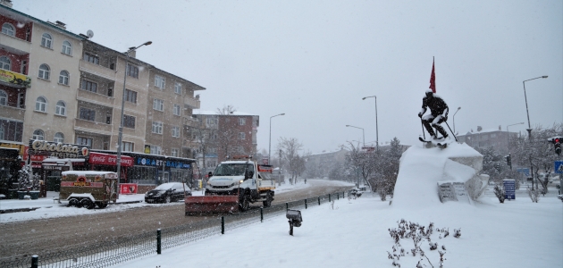 Ağrı'da da kar ulaşımda aksamalara yol açtı.Kentte aralıklarla etkili olan kar nedeniyle belediye ve karayolları ekipleri çalışma başlattı.Beyaza bürünen şehir, drone ile de görüntülendi.