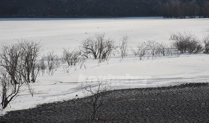 Ardahan'da etkisini sürdüren soğuk hava nedeniyle akarsu ve göletlerin yüzeyi buz tuttu.