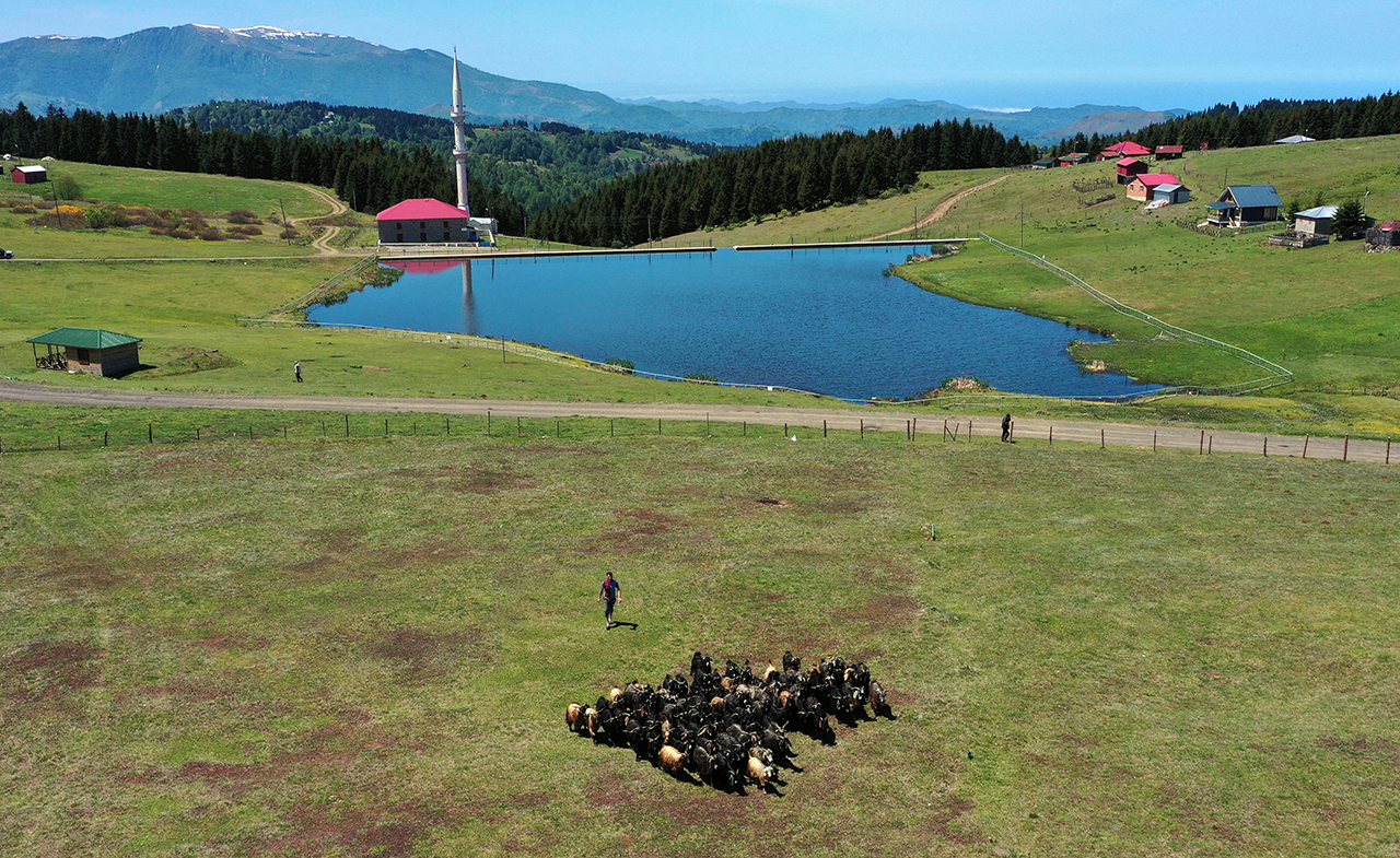 Trabzon'un Düzköy ilçesine 18 kilometre mesafedeki 2 bin rakımlı Hırsafa Yaylası'na genellikle küçükbaş hayvanlarıyla çıkan besiciler, yaklaşık 4 ay sürecek yayla sezonunu açtı.