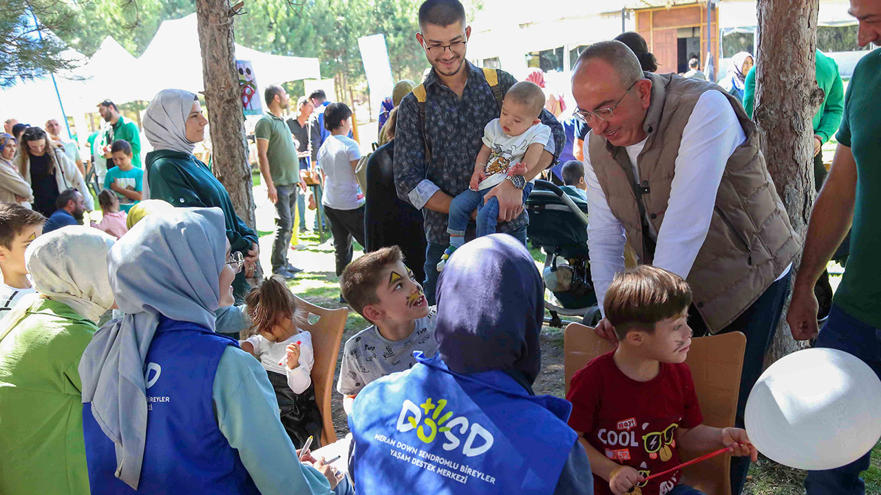 MUNLAFALIOĞLU; “ŞEHİRDEKİ TÜM DOWN SENDROMLU BİREYLERİN HAYATLARINA DOKUNMAYI HEDEFLİYORUZ” Etkinlikte ailelere seslenen DOSD Meram Dernek Başkanı Mehmet Munlafalıoğlu, bir senedir özel çocuklara ve ailelerine hizmet veren DOSD Meram’ın artık büyük bir aile olduğuna vurgu yaptı. Özel çocuklar ve aileleri için hep birlikte mücadele verdiklerinin altını çizen Munlafalıoğlu, DOSD Meram’ın eğitimde önemli bir başarı yakaladığını belirterek, “Ancak daha yapacağımız çok şey var. Down sendromlu tüm bireylere dokunabilmek adına proje üretmeye devam ediyoruz. Bu kapsamda Meram Belediyemiz ile birlikte 18 yaş üstü down sendromlu bireyler için de çalışmalarımız olacak. Şehirdeki tüm down sendromlu insanlara ulaşmayı ve onlara dokunmayı hedefliyoruz. Bu hedefte yürürken yanımızda olan Necmettin Erbakan Üniversitesi hocalarıma, milli eğitim müdürlüğümüze ve tabii ki Meram Belediyesi ve Başkanı Mustafa Kavuş’a şükranlarımı sunuyorum” diye konuştu.