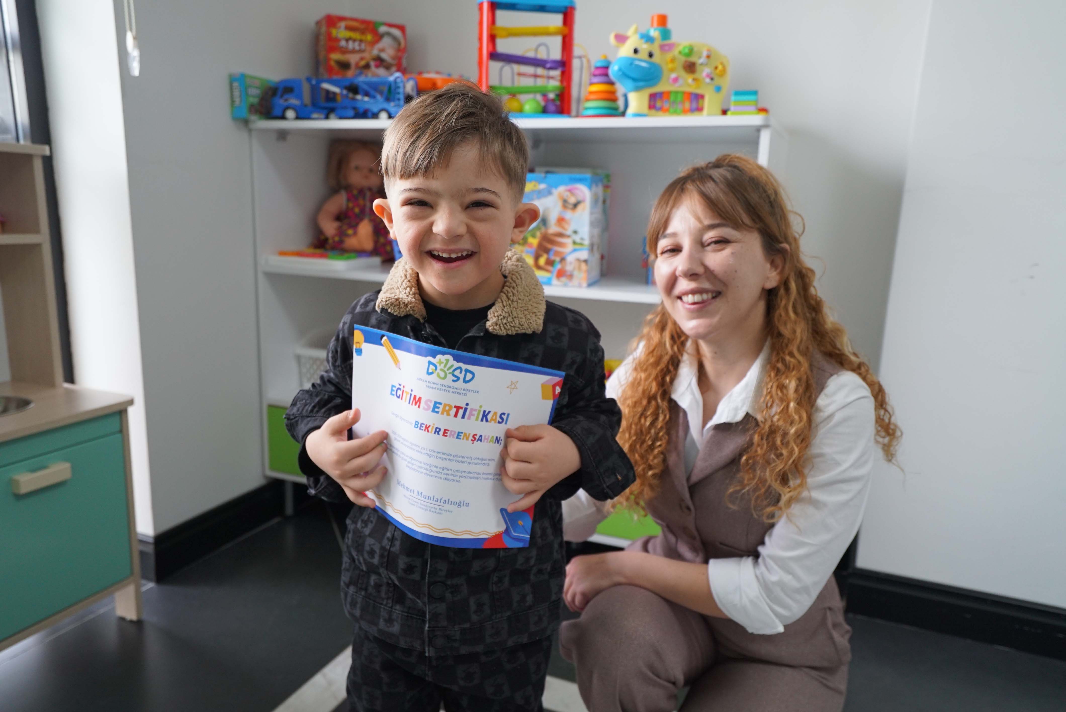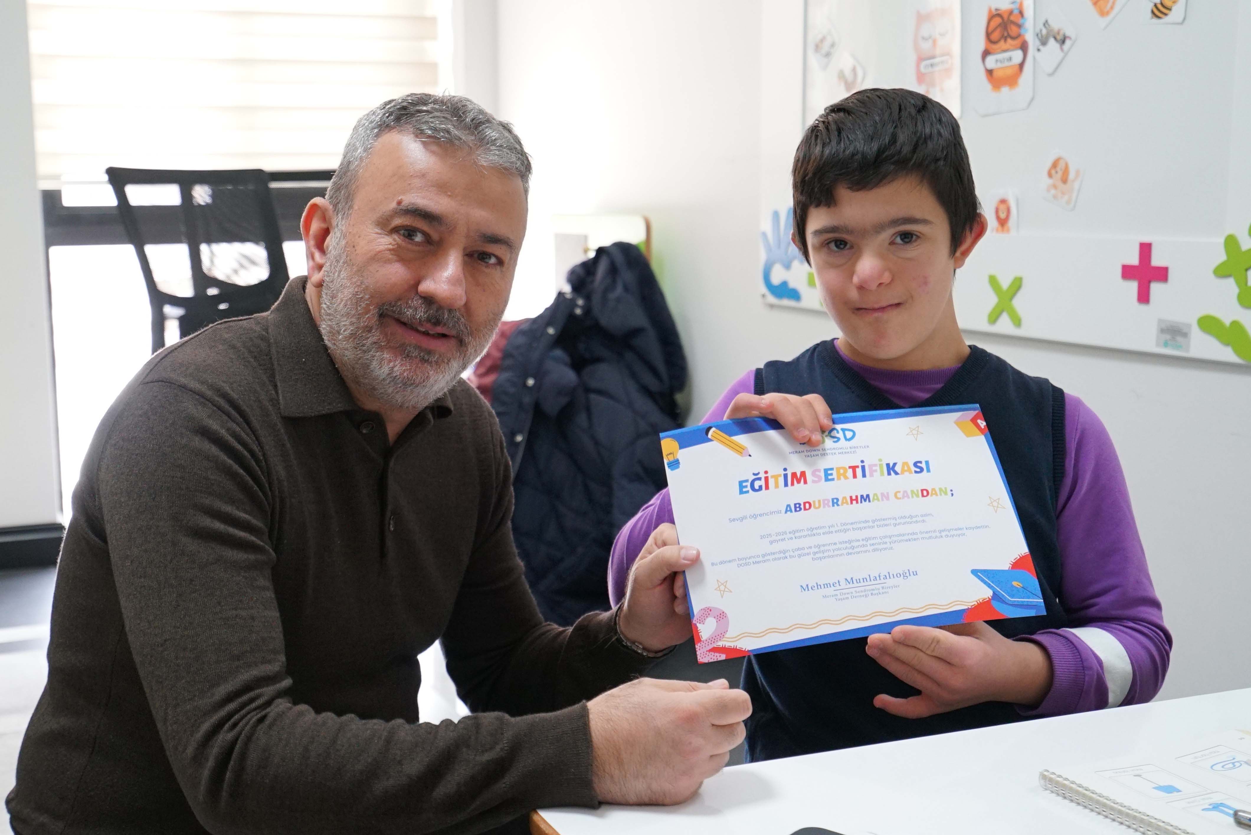 DOSD Meram’da 2025–2026 eğitim yılı birinci dönemi tamamlandı. Down Sendromlu Bireyler Yaşam Derneği Başkanı Mehmet Munlafalıoğlu, dönemin son gününde öğrencilerin gösterdiği azim, emek ve kararlılığı simgeleyen başarı belgelerini takdim etti. Belgelerini alan öğrencilerin mutluluğu yüzlerinden okundu.