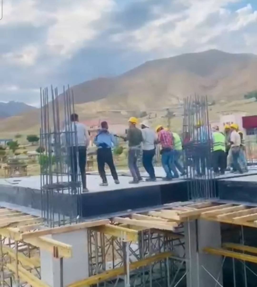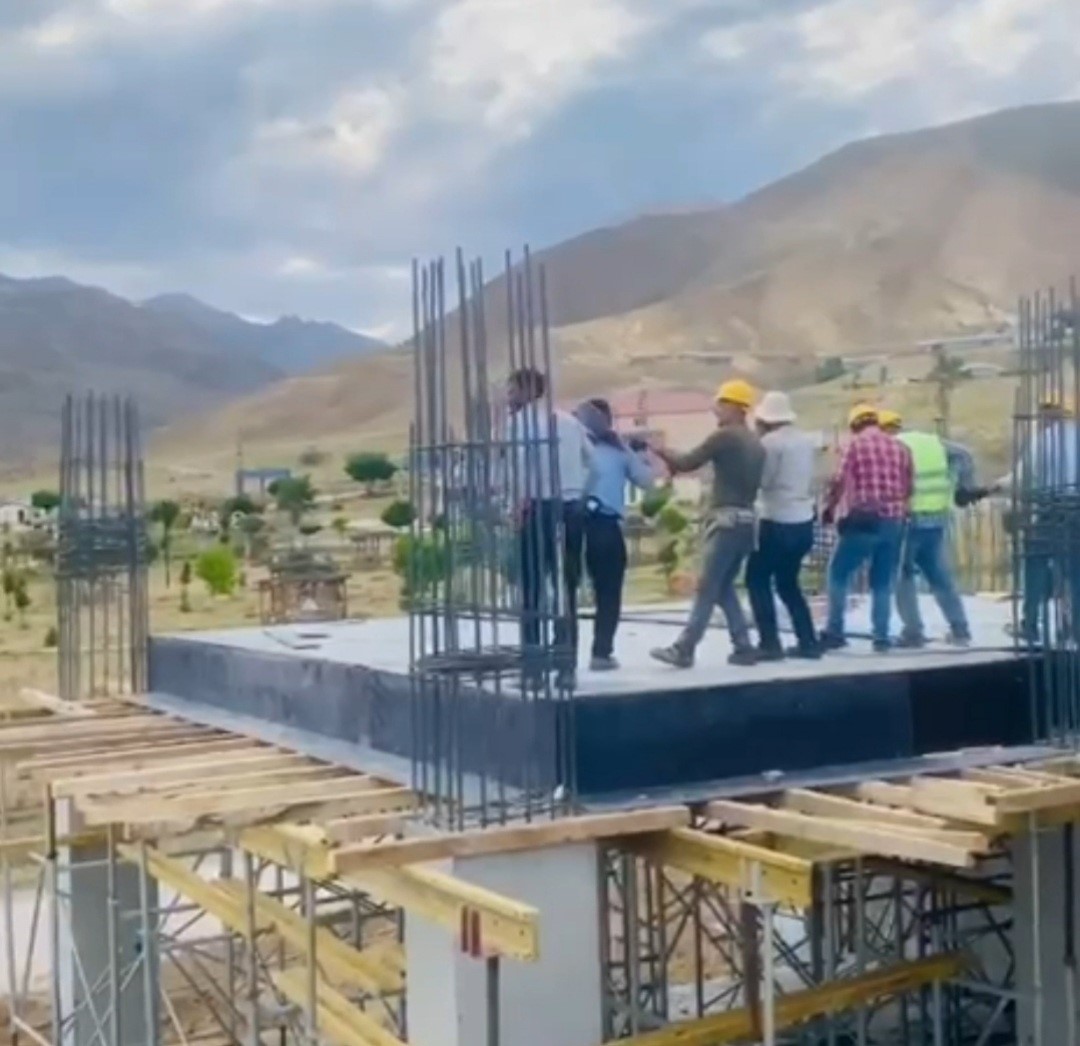 Başkale ilçesinde yapılan hastanenin inşaatında çalışan işçilerin halay çektiği anlar cep telefonu kamerasına yansıdı. Tepebaşı Mahallesi'ndeki 75 yataklı devlet hastanesi inşaatında çalışmalar hızla sürerken cep telefonu ile çekilen bir görüntü ise izleyenleri gülümsetti.