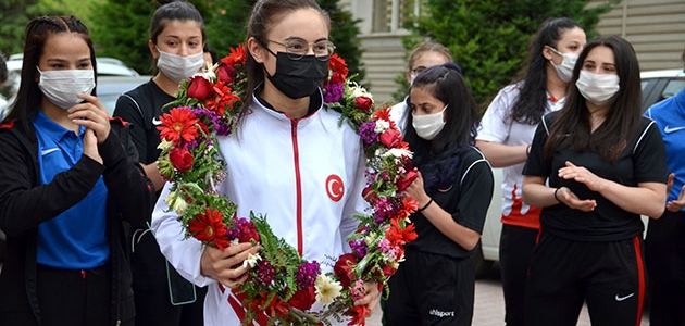 Uçaktan indikten sonra Konya Gençlik ve Spor İl Müdürlüğüne gelen genç sporcu, İl Müdürü Abdurrahman Şahin, Amatör Spor Kulüpleri Başkanı Remzi Ay, antrenörü Talat Ünlü ile Türkiye Olimpiyat Hazırlık Merkezi'ndeki (TOHM) sporcu arkadaşları tarafından karşılandı.