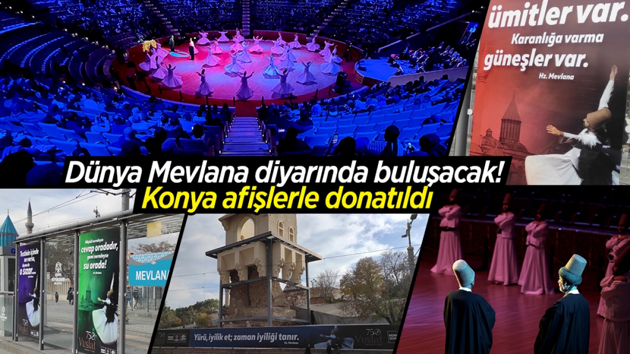 "Vuslat Vakti" temasıyla icra edilecek Hazreti Mevlana'nın 750. Vuslat Yıl Dönümü Uluslararası Anma Törenleri'ne sayılı günler kala Konya, Hazreti Mevlana'nın sözlerinin yer aldığı afişlerle donatıldı.