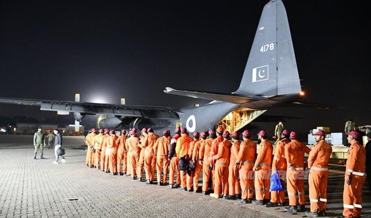 Pakistan, Başbakan Şahbaz Şerif’in talimatıyla Kahramanmaraş merkezli 7,7 ve 7,6 büyüklüğündeki depremler nedeniyle Türkiye'ye arama ve kurtarma ekipleri gönderdi. 50 kişilik arama kurtarma ekibi ve 25 ton yardım malzemesi, Pakistan Uluslararası Havayollarına (PIA) ait uçakla Türkiye’ye doğru hareket etti. Pakistan ordusundan yapılan açıklamada ise Ravalpindi’deki Chakala Hava Üssü’nden kalkan silahlı kuvvetlere ait C-130 nakliye uçağının Adana’ya doğru yola çıktığı belirtildi.