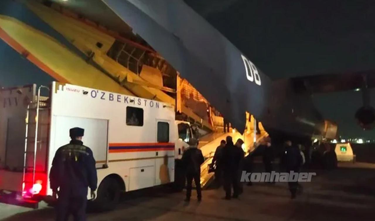 Özbekistan'ın kurtarma ekibi, özel araç ve ekipman ile insani yardımı taşıyan uçağı Türkiye'ye doğru yola çıktı.