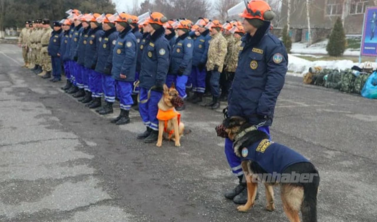 Kırgızistan Acil Durumlar Bakanlığı, arama kurtarma görevlilerinin yanı sıra sağlık çalışanları ve psikologlardan oluşan 63 kişilik ekibi beraberinde iki özel eğitimli köpekle birlikte Türkiye'ye gönderdi.
