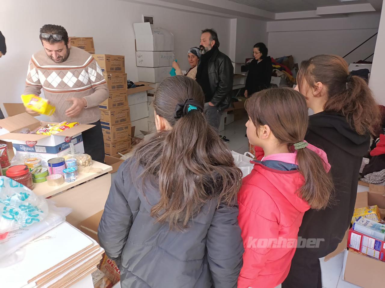 Bu sırada deponun girişinde çalışmaları takip eden Hüyük Belediye Başkanı Mehmet Çiğdem ile karşılaşan çocuklar, okul harçlıklarını birleştirerek aldıklarını söyledikleri içinde insani yardım malzemeleri bulunan koliyi Başkan Çiğdem'e elden teslim etti.