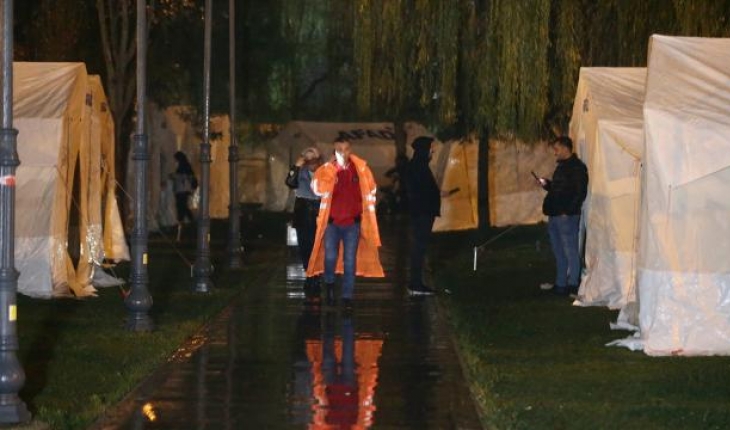 Korktukları için evlerine dönmek istemeyen vatandaşlar için Millet Bahçesi ve Anıt Park alanlarına AFAD çadırları kuruldu.