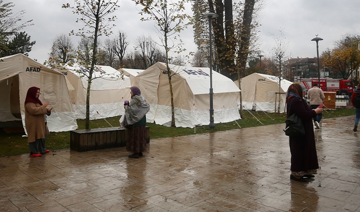 Düzce'de depremin ardından evlerine girmeye korkan vatandaşlar, afetin dördüncü gününde AFAD tarafından kurulan çadırlarda kalmaya devam ediyor.